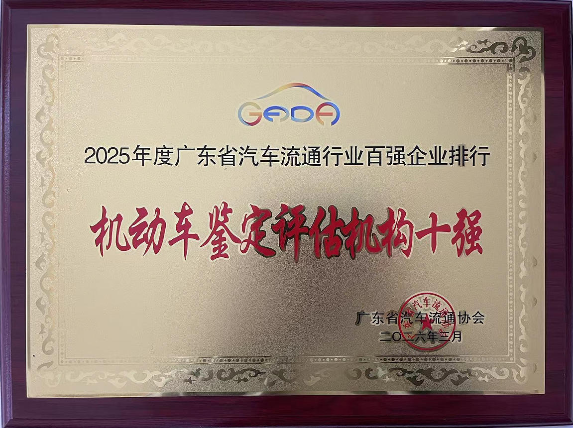 喜报|荣耀上榜!我公司荣获「广东省机动车鉴定评估机构十强」称号 2026-02-26
