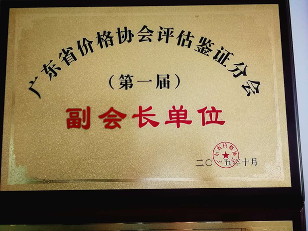 热烈祝贺我公司荣获广东省价格协会评估鉴证分会第一届“副会长单位”